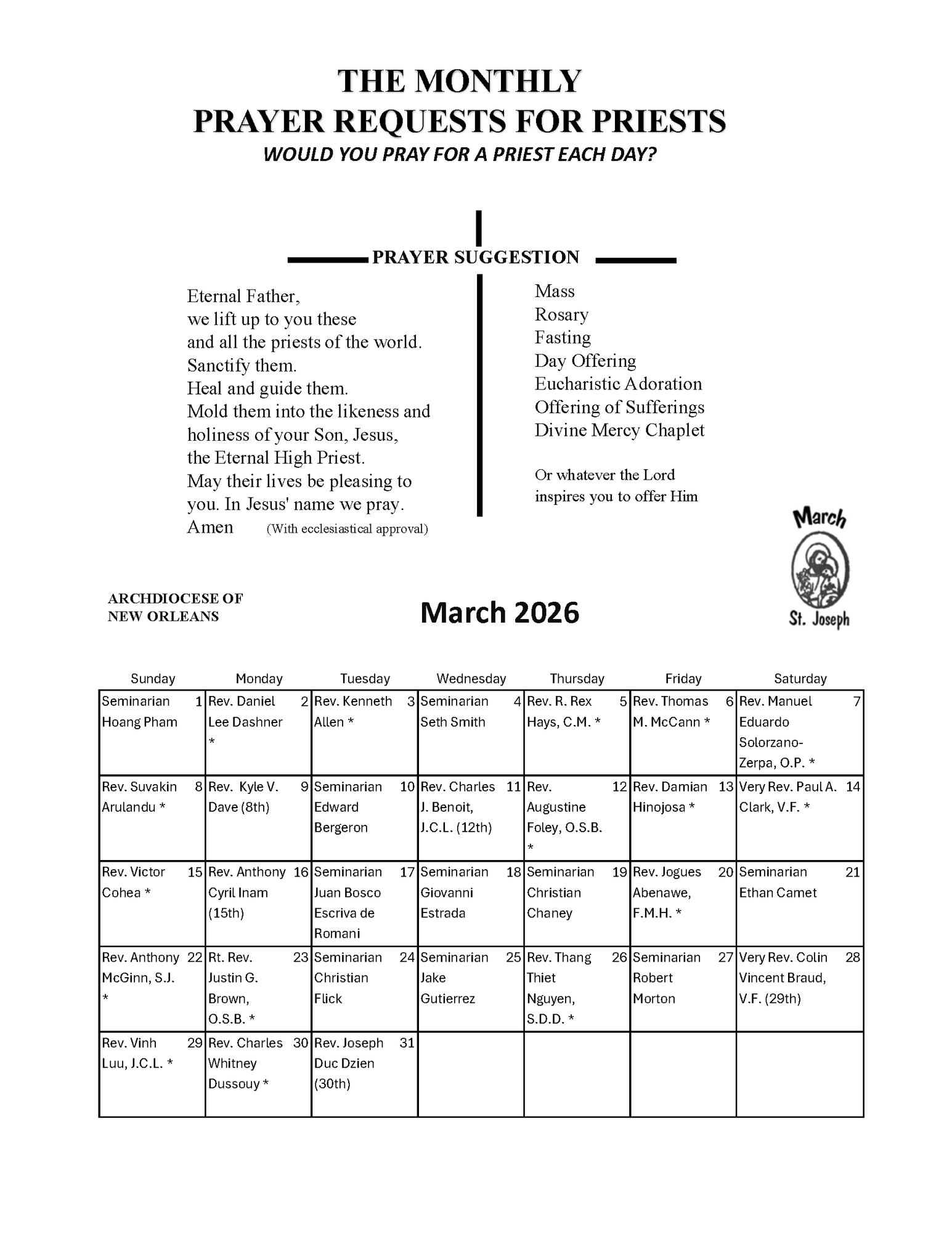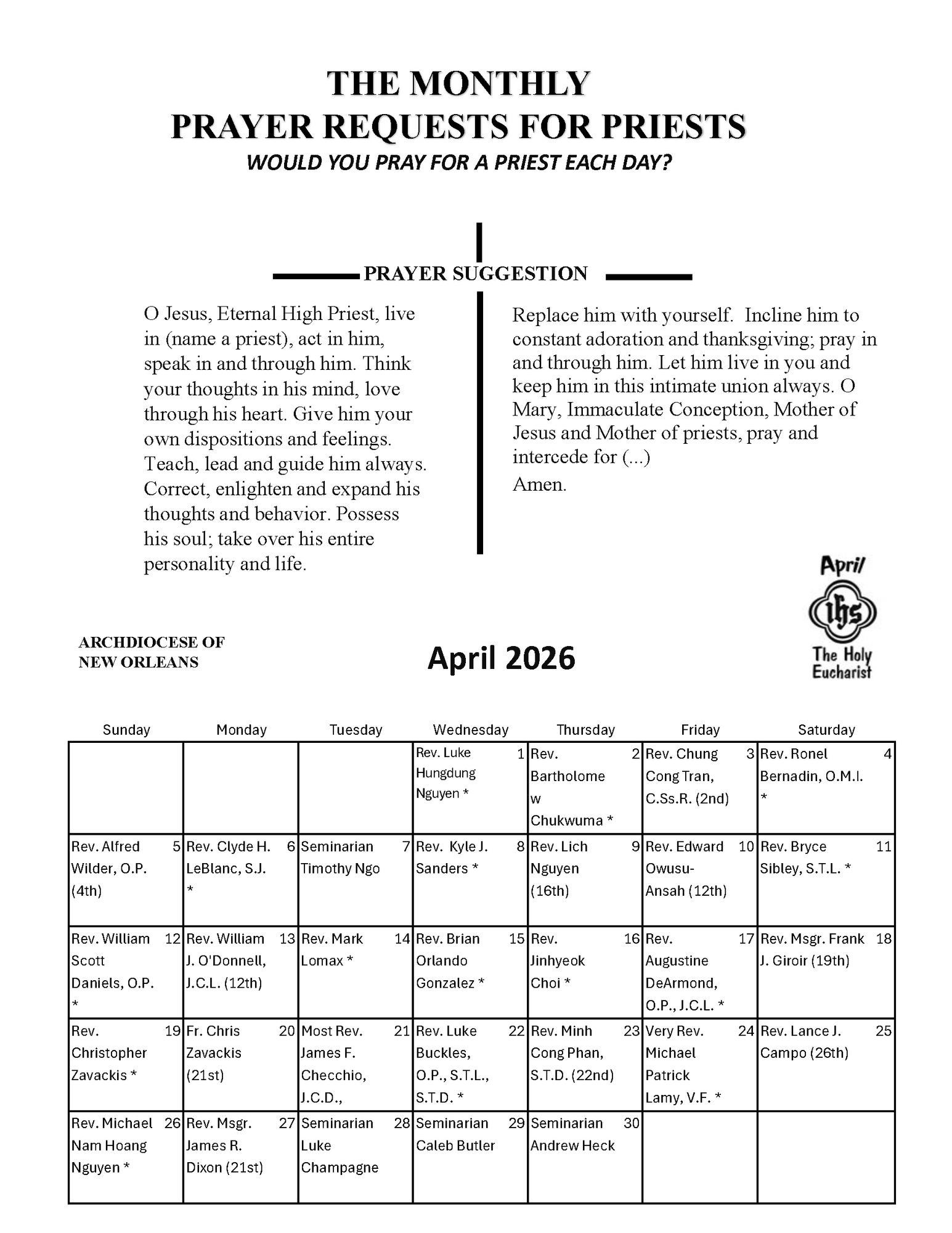 Pray for Priests & Religious